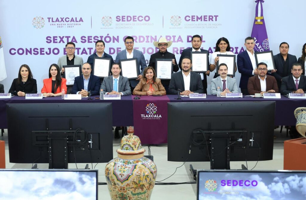 La gobernadora Lorena Cuéllar Cisneros, acompañada por el coordinador Ejecutivo de la Comisión Nacional de Mejora Regulatoria, Helio Cuauhtémoc Jacobo Ramírez, encabezó la sexta sesión del Consejo Estatal de Mejora Regulatoria de Tlaxcala, donde se dio a conocer que la entidad avanzó 12 lugares en este rubro.