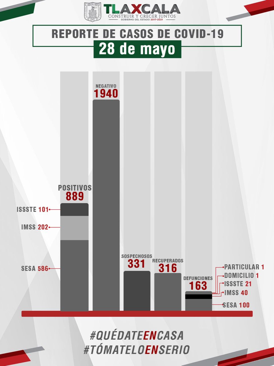 El estado registra, hasta este momento, mil 940 casos negativos, 331 se encuentran en espera de resultado y 889 bajo vigilancia epidemiológica.