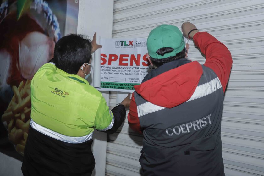 Este fin de semana, la Comisión Estatal para la Protección contra Riesgos Sanitarios de Tlaxcala (Coeprist) y la Coordinación Estatal de Protección Civil (CEPC) suspendieron diversos establecimientos y desactivaron reuniones sociales que no respetaban las medidas preventivas que anunció el Consejo Estatal de Salud para prevenir contagios de Covid-19.