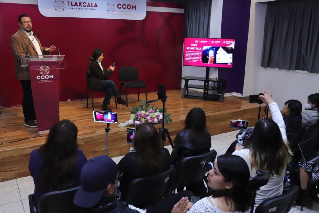 Durante los Diálogos Circulares de la Coordinación de Comunicación (CCOM), el director de la Coordinación del Registro Civil del Estado, Víctor Hugo Mena Hernández, explicó que la CURP biométrica incorpora fotografía del rostro, escaneo de huellas dactilares, iris y firma electrónica, con el propósito de estandarizar la identificación en todo el país y fortalecer la seguridad jurídica de la población.