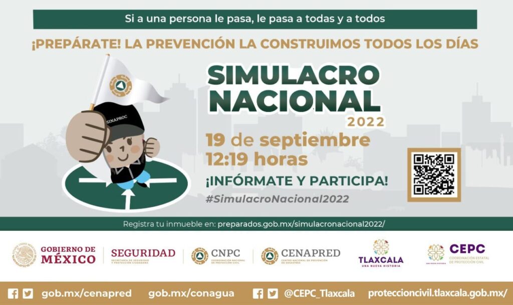 En el marco de los sismos ocurridos en septiembre de 1985 y 2017, la Coordinación Estatal de Protección Civil (CEPC) y la Red Municipal de Protección Civil (RMPC) del estado, se encuentran preparadas para realizar el Simulacro Nacional 2022 este 19 de septiembre a 12:19 horas, con el objetivo de conmemorar el Día Nacional de la Protección Civil.