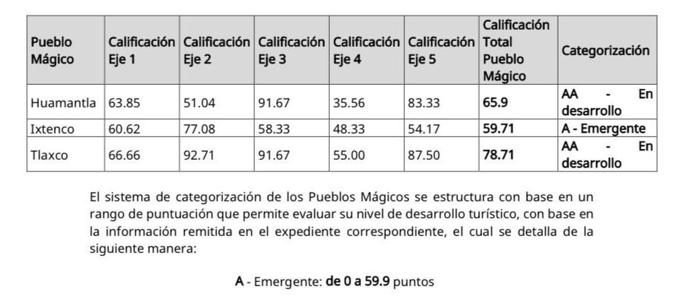 Tlaxco, Tlaxcala.— 24 de Enero 2026. Como parte de la Estrategia Nacional para el Fortalecimiento de los Pueblos Mágicos, la Secretaría de Turismo del Gobierno de México dio a conocer los resultados de la evaluación más reciente aplicada a los destinos con este nombramiento, en la que Tlaxco obtuvo una calificación de 78.71 puntos, ubicándose en la categoría “AA – En desarrollo”.