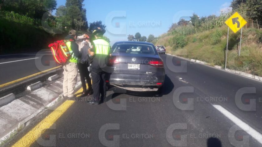 Caos vial sobre la carretera Tlaxcala- El Molinito a la altura del municipio de Totolac, se generó la mañana de este miércoles, luego de que dos vehículos tipo Jetta, impactaran después de haber sido invadido su carril por un tráiler.
