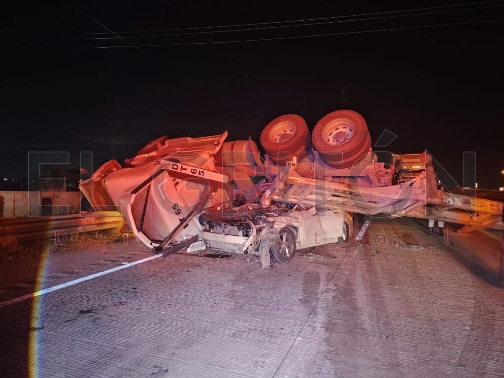 De acuerdo con los primeros reportes, el percance involucró a un tráiler de color blanco que transportaba doble caja. Durante la volcadura, una de las cajas y la cabina del tráiler cayeron sobre un automóvil particular también de color blanco, el cual quedó completamente aplastado.