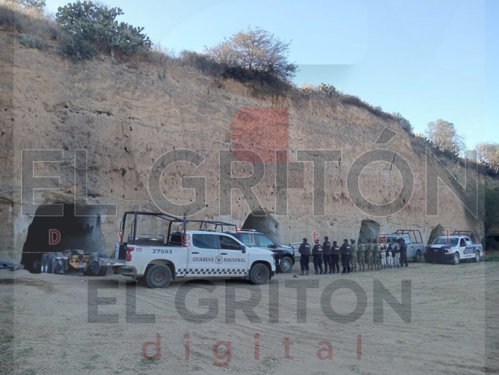 Durante la inspección, las fuerzas de seguridad localizaron al interior de las cuevas un total de ocho vehículos, todos con reporte de robo, huellas de desvalijamiento y, en varios casos, con inhibidores de señal instalados. Entre las unidades aseguradas se encuentran tres tractocamiones marca Internacional modelo LT625, una plataforma y cuatro motocicletas de las marcas KTM, Pulsar, Italika y una motocicleta sin marca identificada, presuntamente de fabricación genérica.