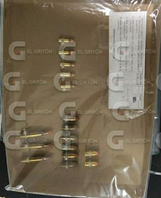 Ahí ubicaron un vehículo de la marca Seat, tipo León, color rojo, modelo 2009, con placas de circulación S97-AZD del Estado de México, y en su interior localizaron en total 16 cartuchos: tres de calibre 223, que es de arma larga; seis 9 milímetros; dos 380, y cinco tipo .22.