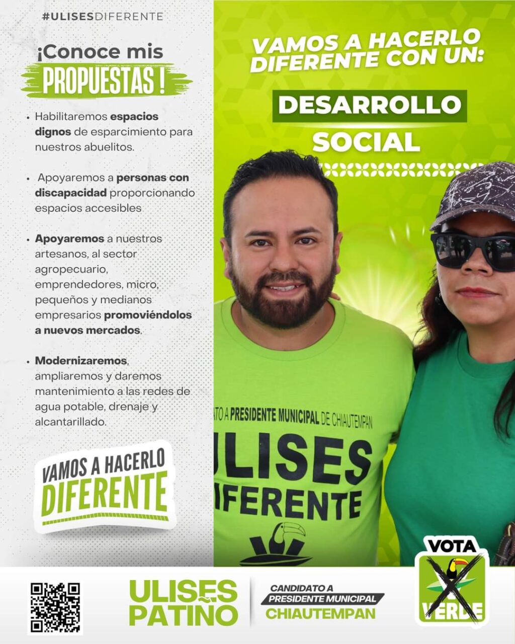 Ulises Patiño, candidato del Partido Verde Ecologista de México a la alcaldía de Chiautempan, reiteró su compromiso con la construcción de un municipio más inclusivo y con mejor infraestructura para todos los sectores de la población, con especial atención a los grupos vulnerables como las personas con discapacidad y los adultos mayores.