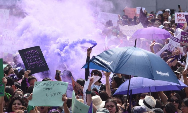 CIUDAD DE MÉXICO (Proceso Digital).- Una marea violeta desbordó las calles del centro histórico de la Ciudad de México este domingo, durante la conmemoración del 8 de marzo, Día Internacional de la Mujer.