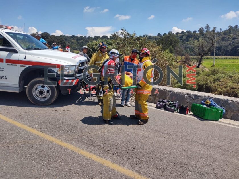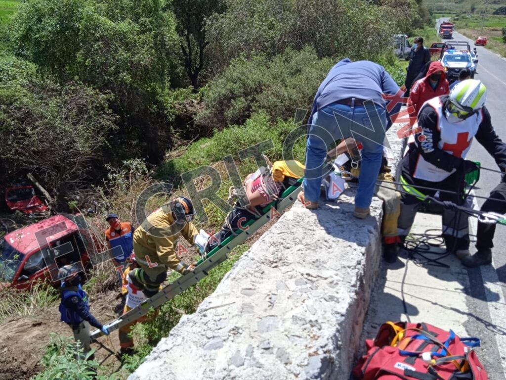 Elementos de rescate de la Cruz Roja Mexicana, Protección Civil Municipal y Cruz Ambar Tlaxcala, realizaron el rescate de dos mujeres quienes resultaron lesionadas, después de que el vehículo en el que viajaran cayera al interior de un barranco, en Ixtacuixtla.
