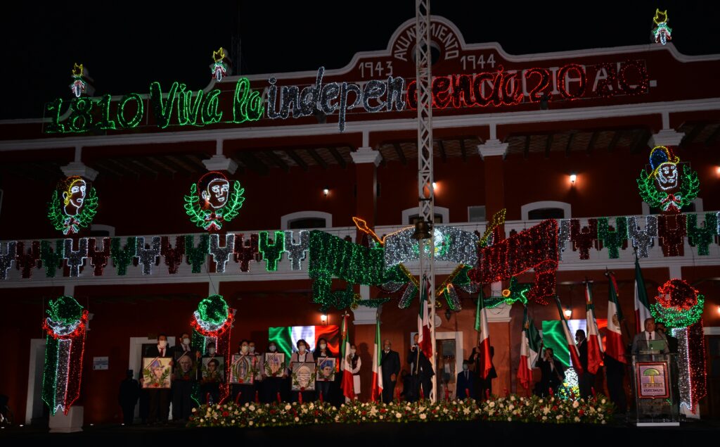 Alrededor de las 22:50 horas, el secretario del Ayuntamiento, José Luis Guzmán Brindis, dio lectura del Acta de Independencia, para que posteriormente el munícipe, en compañía de su esposa, Alicia Analy Rodríguez Pacheco, síndico, regidores, presidentes de comunidad, coordinadores y directores de área, subiera al estrado portando el lábaro patrio, donde dio el tradicional grito que conmemora el CCX Aniversario de la Independencia de México.
